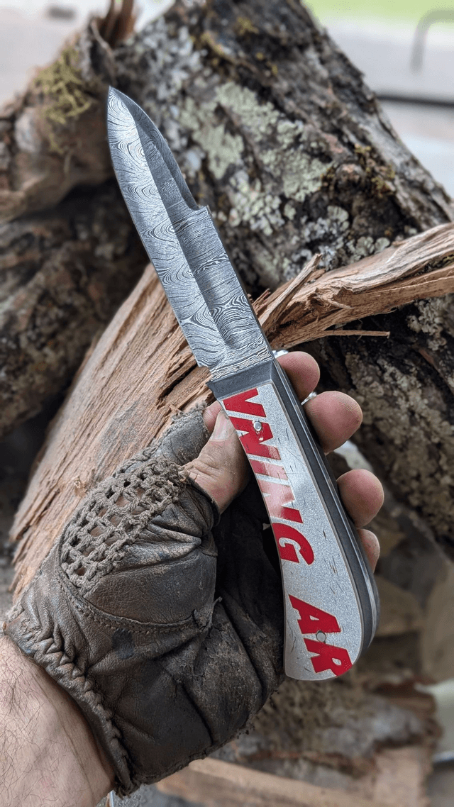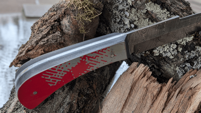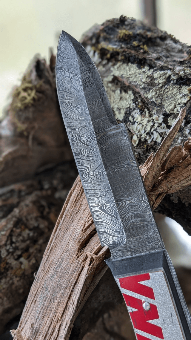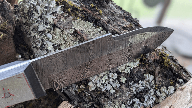 Ce couteau est unique, il n'en existe qu'un seul comme lui. C'est une lame en Damas (réalisé par un autre forgeron) qui est composé d'aciers carbonés et de Nickel. Il va se patiner avec le temps car ce n'est pas un couteau inoxydable. N'oubliez pas que le fait qu'il se patine est tout à fait naturel et cela rendra votre couteau encore plus atypique.